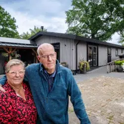 Elke ochtend zwaaien Ben (72) en Marrie (65) de Graaf uit Giethoorn hun kleinkinderen uit die naar school gaan. Ze wonen in een mantelzorgwoning. Hun dochter en haar gezin wonen ernaast. Dit type woningen is straks makkelijker te plaatsen. „We hebben er geen moment spijt van gehad.”